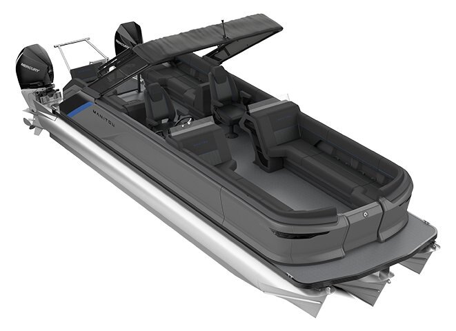 2025 Manitou Explore 26 Navigator Dual Engine Shark Gray Carbon Blue